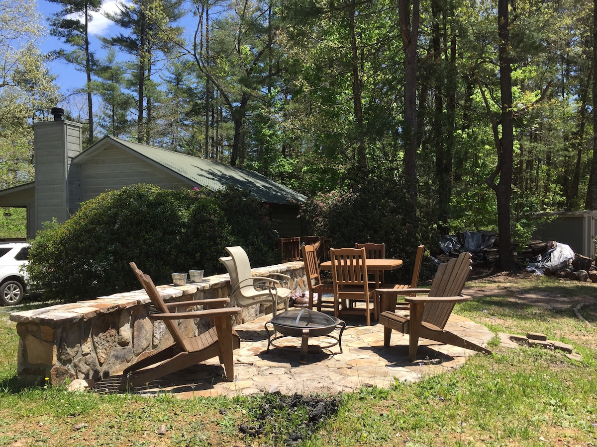 We have a comfortable Extra House we call it. Extra cozy extra cute Extra House. The house is right on the Tallulah River in Towns County. There is fishing/swimming hole about 100 ' up river and a waterfall up a trail behind the Big House about a 30 minute hike up and back. Longer if you jump in the falls. Trout fishing out the door and 6 miles of fishing along the main road. We have a 250' zipline into a swiming pond or get off before the water. Lots of hiking trails and waterfalls.