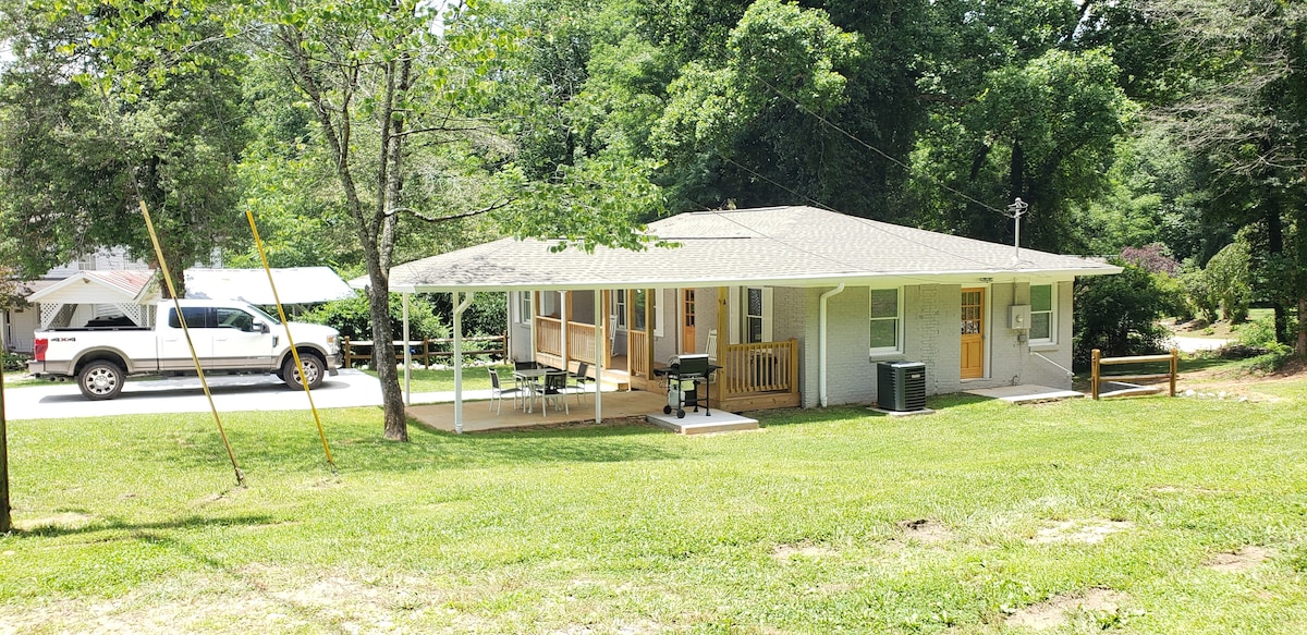 Visit North Georgia & the foothills of the Blueridge Mountains. Sunshine Cottage is like visiting your grandma's house. Plenty of books, games and a little of the past in this over 100-year-old home! Just a 14-minute walk, or 3-minute drive to downtown Clayton. Spend an evening on the screened in porch, play cards in the game room while listening to some music or enjoy breakfast with family in the kitchen. SO much to do in the area such as hiking, kayaking or shopping, or visit a winery.