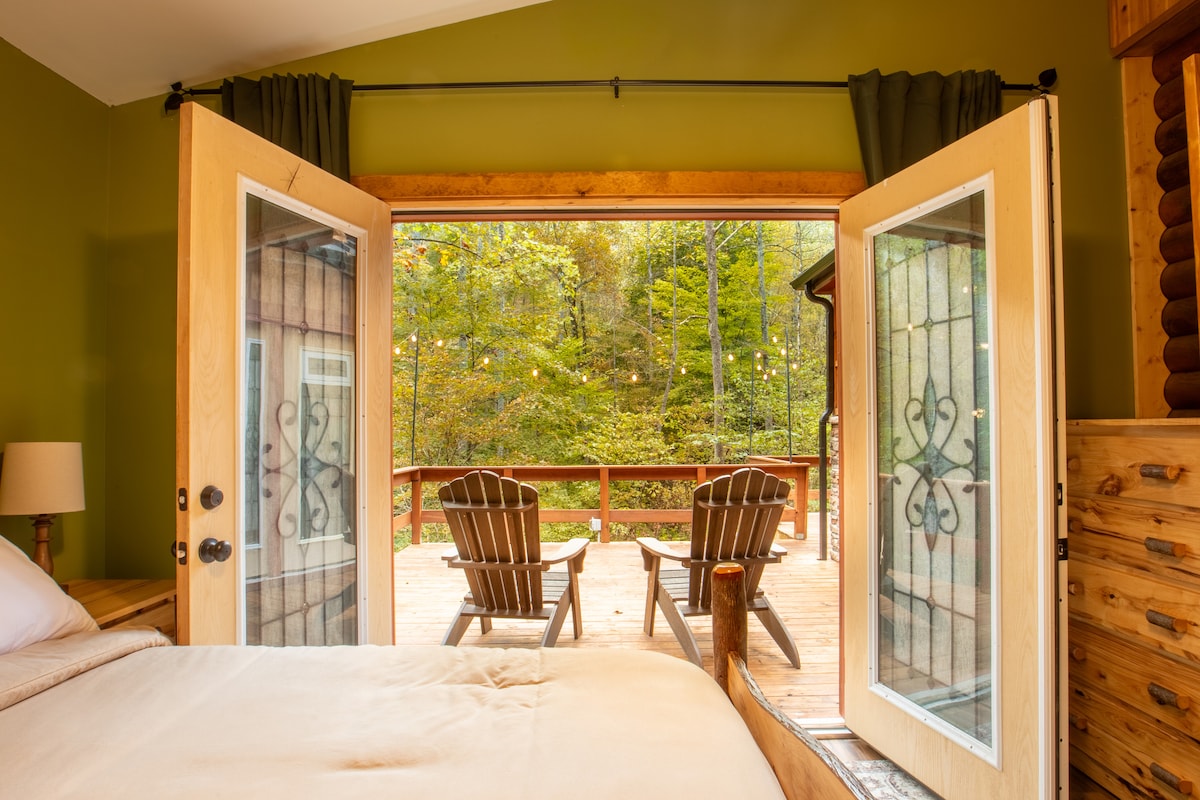 Nestled in the trees high above the water, the Overlook Cabin offers a peaceful, comfortable, and intimate experience of the Ohio River, with a large riverfront window, 8x12ft deck, & jacuzzi bath. The 12x40ft space has a queen, 2 twins, another bed in the loft, and a couch, and would be great for families, hunters, or couples. Each day includes 2 made-from-scratch Breakfasts & coffee (up to a $26 value) and owners live onsite should any issues arise. Pet friendly. Free wi-fi available.