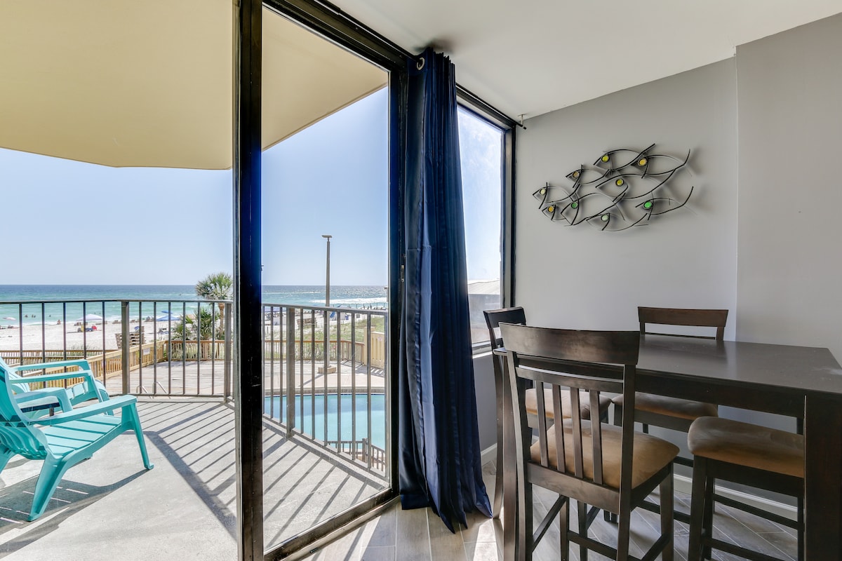This beachside studio condo is located on the 1st floor and sleeps 4! This unit boasts 2 luxurious queen size beds and sofa, 1 bathroom, a fully stocked kitchen, dining area, and 50-inch smart tv. All furnishings in this unit are brand new for your enjoyment. A walk-in closet provides space to store your luggage and hanging clothes, you will also find beach chairs, beach towels and umbrellas for your convenience. This unit is also steps away from the soon to be opening Tootsie's.