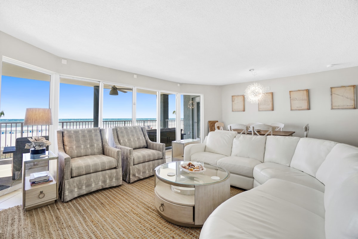 Located in Tower 1 on the 19th floor, our newly renovated (2022) studio holds breathtaking, unparalleled panoramic views of the Gulf of Mexico. This upscale, professionally decorated oceanfront condo offers splendid furnishings, sufficient space, 550 sq ft, and a perfect opportunity for a romantic getaway in one of PCB's most popular resorts: Majestic Beach Resort. This space will feel like an upscale hotel just feet away from the beach. Beach service included from March 1st to October 31st.