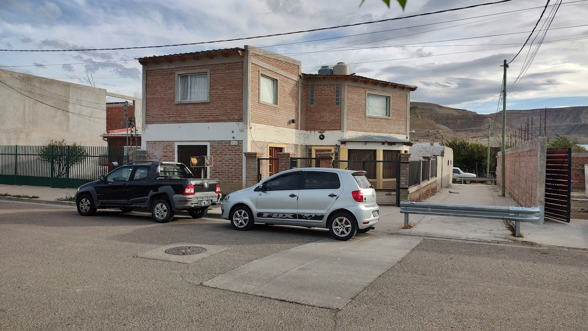Tranquilo alojamiento, situado en Comodoro Rivadavia, cercanía centro de la ciudad; cuenta con estacionamiento (con costo extra), portón eléctrico, Wifi gratis en toda la instalación El departamento cuenta con alojamiento para 4/5 personas (pato mascotas y niños) Cocina totalmente equipada, tv de pantalla planta, parrilla. El aeropuerto internacional de general Enrique mosconi, se encuentra aproximadamente a 13 km del alojamiento.