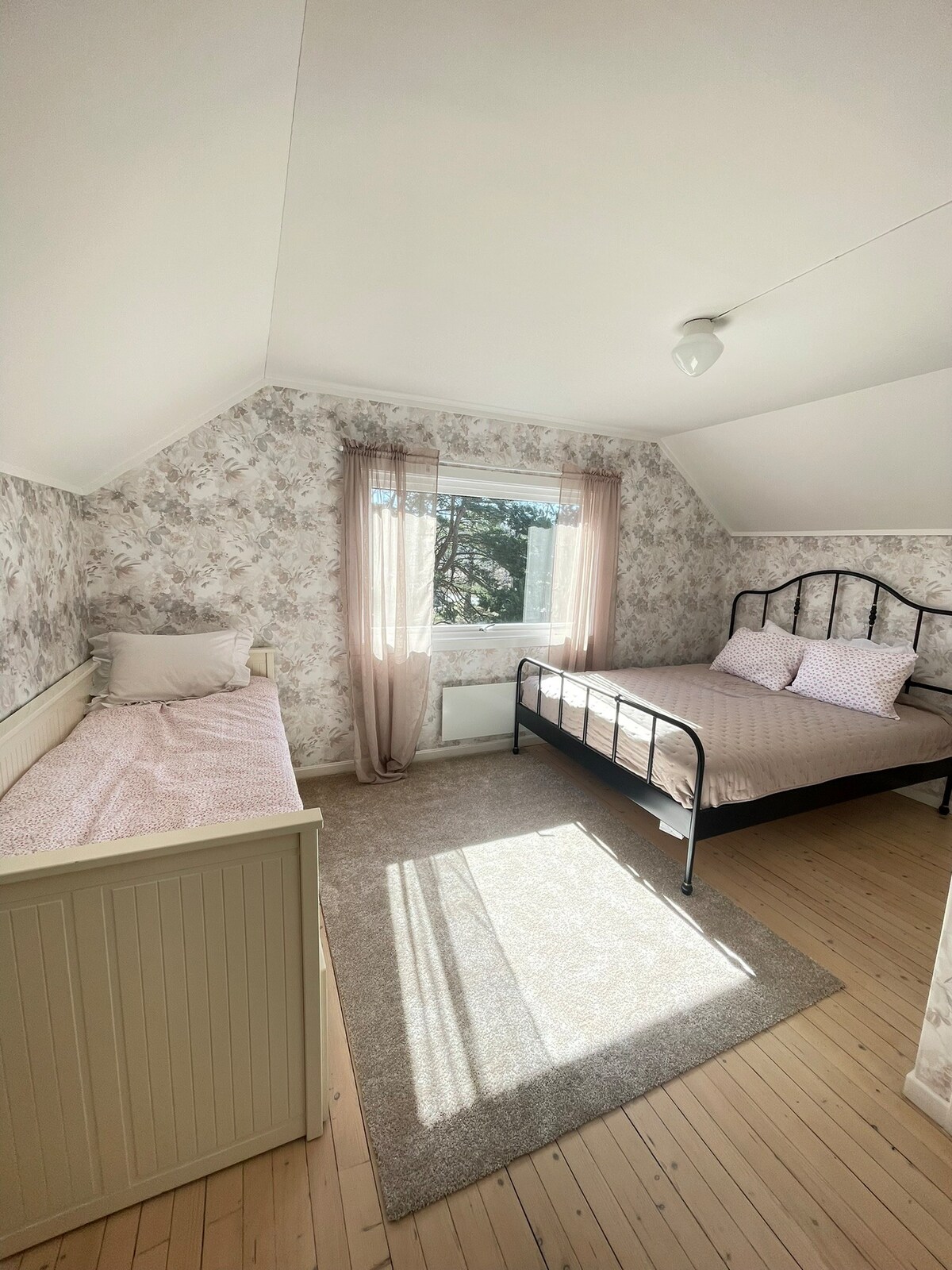 Kos dere i hagen, orangeriet, lekehuset og sandkassa. Gå 80 meter ned til svaberg og badeplass, gå 400 meter og du finner minigolf, strand, freesbegolf og sandvolleyballbane. Båthavn og spisested 1 km unna. Turstier 1 dobbeltseng, 1 dobbel sovesofa, ekstra overmadrass til sovesofa er i skapet på vaskerommet/boden. 1 enkel seng, 1 babyseng og 1 barnereiseseng. Håndklær, sengetøy,. kaffe, tea, sukker, krydder, tørkepapir, dopapir, våtservietter og diverse såper er i leiligheten og kan brukes.