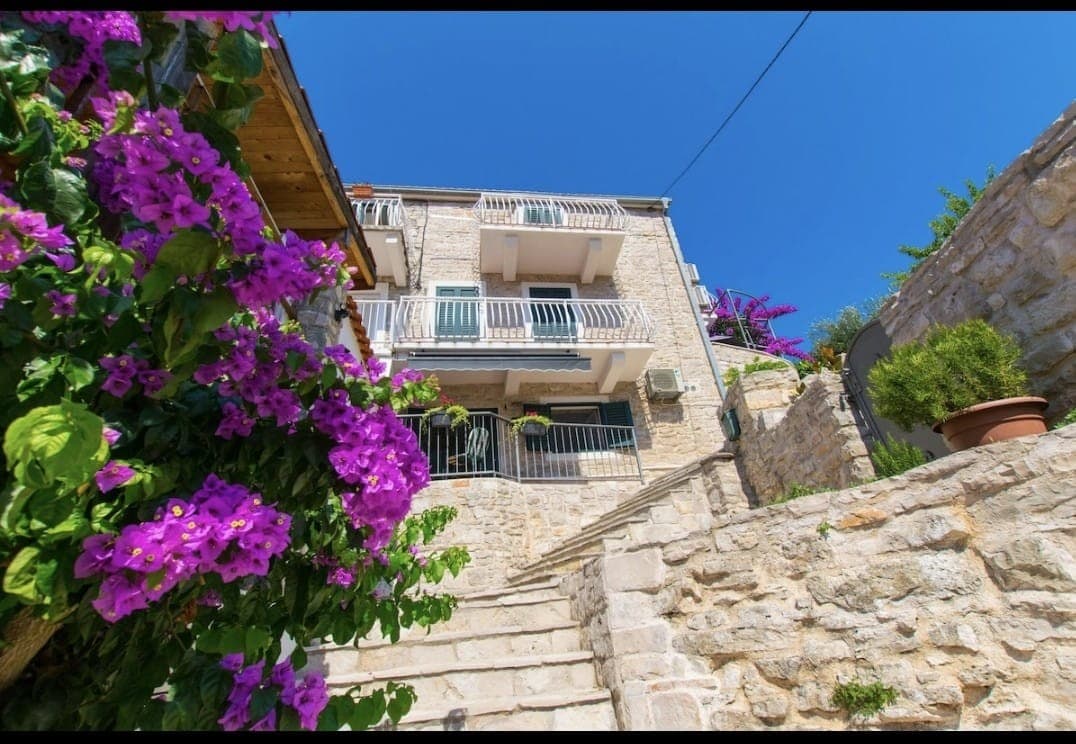 Royal is new, modern & luxury renovated apartment with jacuzzi, 50 meters away from beach. Has 50 square meters and 30 square meters terrace. Comes with 2 bedrooms, a living room, a fully eqipped kitchen with a dining area, bathroom with great shower, barbecue facilities, garage(1 car) , flat-screen TV in every room and free wi-fi. Offers a big terrace with open sea view on surrounding islands. Diving can be enjoyed nearbly. Trogir is 5 km away and Split airport 8 km from the acommodation.