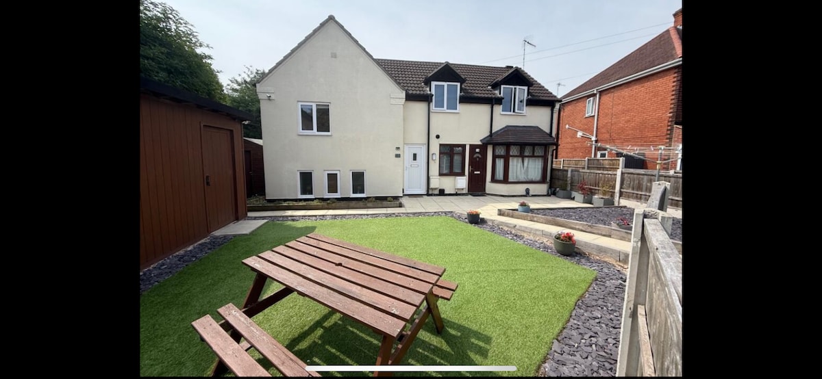 Hidden gem! Newly renovated spacious ground floor apartment, only 10 mins from Nottingham city centre & 2 minutes from tram network Modern kitchen: fridge-freezer, washer/dryer, oven, microwave, air fryer, smart TV, free fast wifi & dining table in lounge Sleeps 4: Double bed in bedroom; sofa bed in lounge Garden Terrace, retro bar with stools, table & chairs and BBQ. Perfect for a relaxing, enjoyable getaway! 2 free private parking spaces (FCFS basis) & street parking available