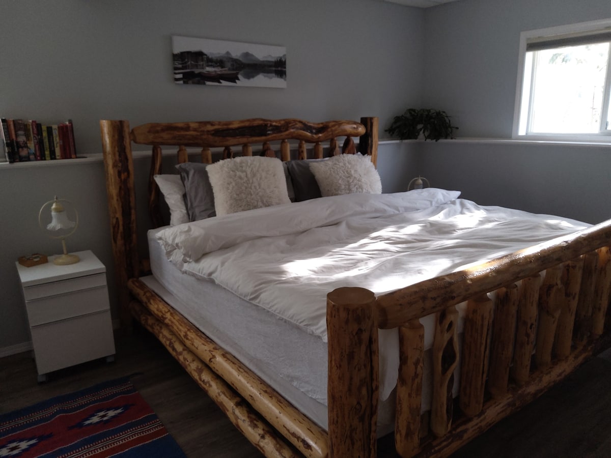 Welcome to your Hidden Oasis! Located two blocks from the heart of downtown Invermere and an 8 minute walk to Kinsmen Beach on Lake Windermere! Once you park, you’re welcomed by the main deck, bbq and seating area, and private entrance. This custom guest suite sleeps 4 between the main bedroom and the whimsical sleeping pod (mini 2nd “bedroom”). Off the main bedroom is your private patio with gas fire pit and 8 person hot tub in a tranquil garden setting. Your unique, peaceful retreat awaits you