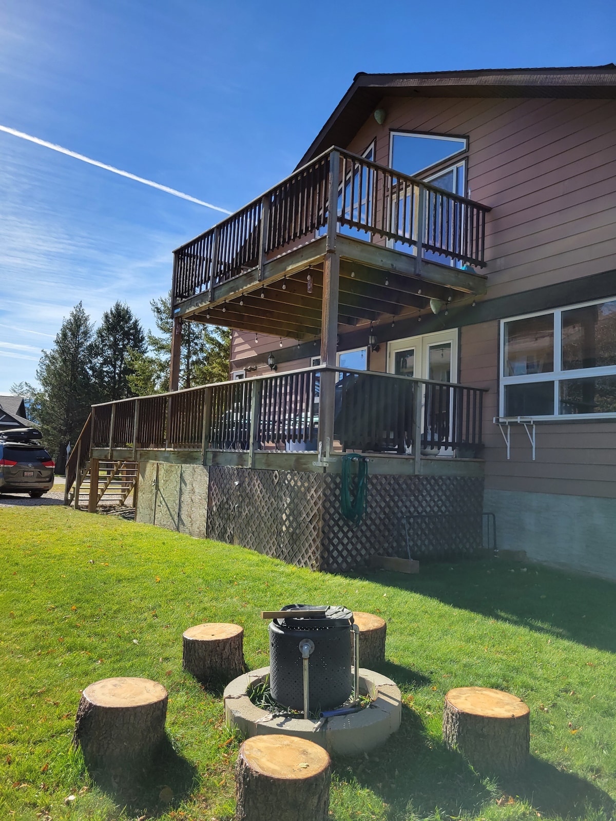 Soak away your stresses while gazing at the breathtaking scenery of the Rocky Mountains in a peaceful Mountain neighbourhood. Watch the sun set while making memories around the campfire. Let the surroundings inspire you to create incredible meals in our fully stocked gourmet kitchen. Biking and Hiking trails are outside your door; Well behaved Dogs (No CATS) are welcome but we MUST be informed as there is a Pet Fee and guidelines. Please Note that we have a Neighbour on one side.