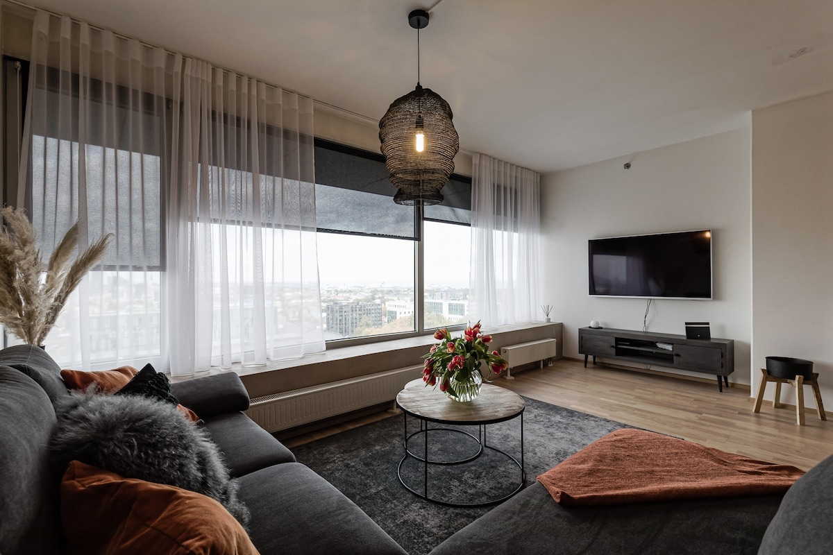 Stylish and cozy apartment in a new building, located on the 4th floor in a quiet courtyard between two Hilton hotels. The gated yard ensures privacy and security, and there's a playground for children. Guests have free parking in an underground garage. The Old Town is just a 15-minute walk away, or 3–4 stops by tram. Nearby, you'll find grocery stores, a local market, and a variety of restaurants. The apartment is fully equipped with everything you need for a comfortable stay.