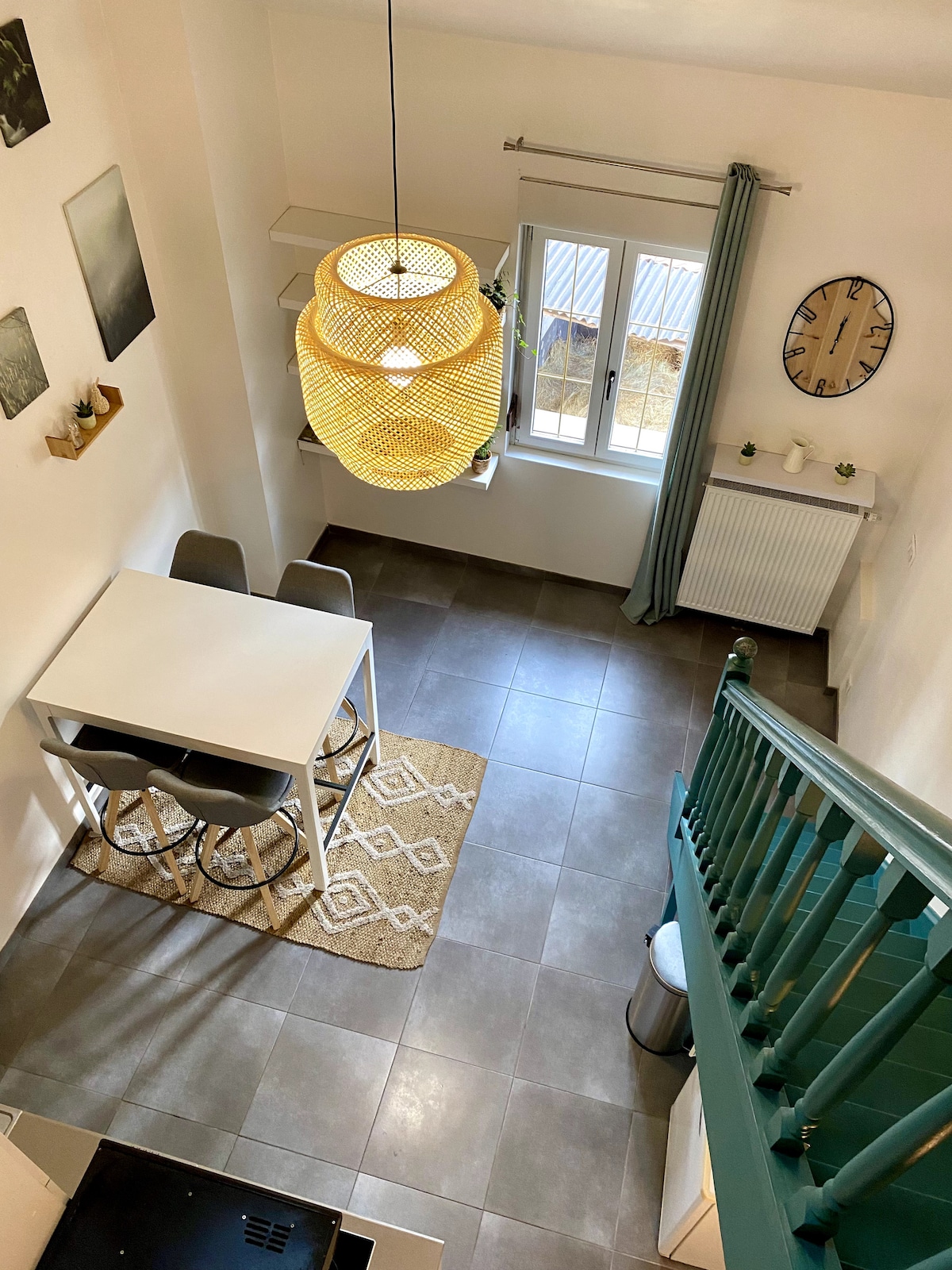 🏠🥨 TRIPLEX 🗝Chaleureux cocon atypique , avec terrasse au bord de l'eau🛶🦆 Au rez-de-chaussée , cuisine équipée et salle à manger . Belle espace de vie, donnant un accès direct à la terasse située au bord du canal du Quatelbach 🛶🦆 Au 1er étage, salon avec canapé convertible ( + surmatelas pour le couchage ) tv connecté📺 Suivi d'un espace détente, 📖 🎼.. WC Au dernier étage, chambre avec salle de bain attenante, lavabo double vasque Tv connecté 📺