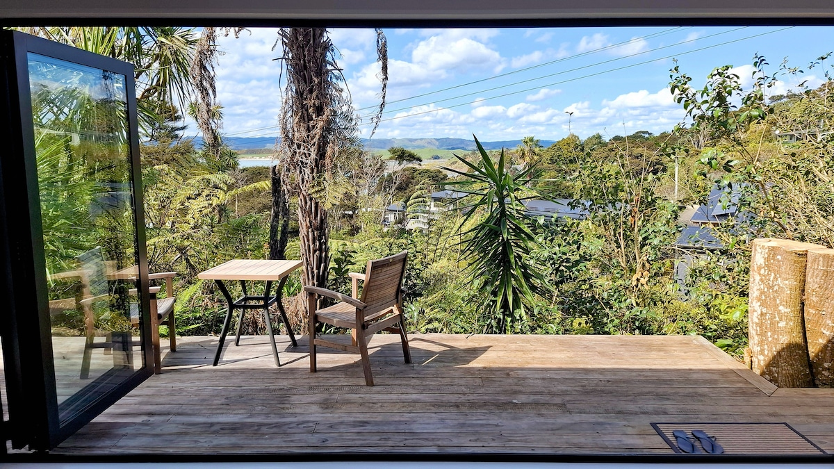 Reconnect with nature in a tiny house surrounded by native bush in a calm and inspiring space overlooking the Tasman sea and just above the world class surf breaks of Indicators and Whale Bay. On the property we have a number of completely unique structures spaced apart in the bush to give maximum privacy. All are designed and positioned to make the most of the surrounding bush and ocean below. There is a large lawn area for guests to enjoy and a beautiful outdoor hot water shower.