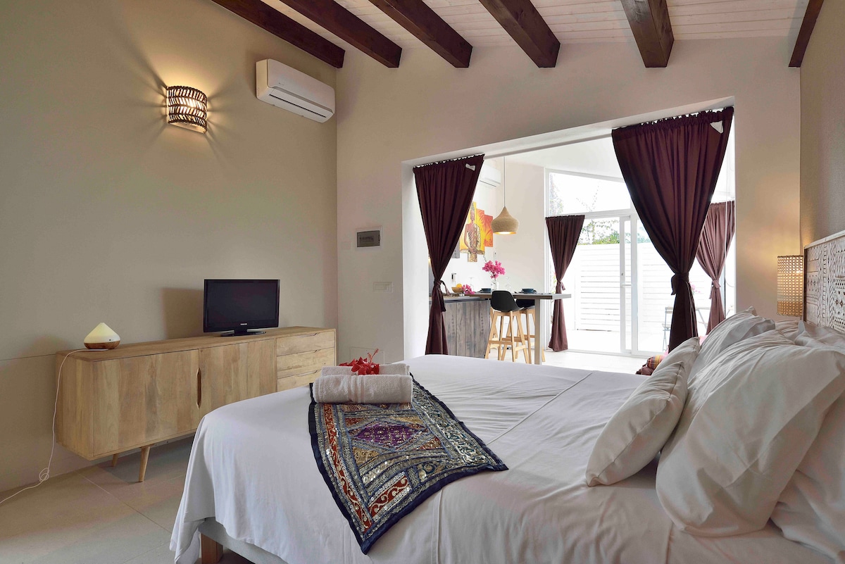 Porta tutta la famiglia in questo fantastico alloggio con tanto spazio per divertirsi. Piscina in esclusiva, zona barbecue e tanto rilassamento! La proprietà si compone di due bungalow, nel primo camera da letto con letto alla francese, bagno, cucina e salotto con ulteriore divano letto. Nel secondo bungalow bagno con lavatrice, zona open space con mini isola-cucina e divano letto. Completamente condizionato.