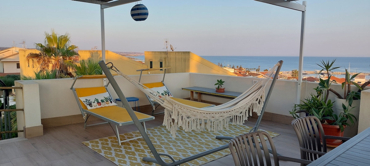 "Donnalucata casa vacanze" con vista sul mare Il "DONNALUCATA Casa vacanza " accoglie i suoi ospiti in una residenza situata di fronte al mare, in una splendida ed unica posizione, tra la riserva naturale del fiume Irminio e il borgo marinaro di Donnalucata. La casa si affaccia sulla litoranea ma ha l'ingresso dal retro . L' appartamento ospita 5 persone, ha due camere una doppia e una tripla con bagni privati. Le mete più ambite del patrimonio artistico e culturale della nostra terra come Scicli, Modica, Ragusa Ibla sono facilmente raggiungibili. Allargando poi il nostro orizzonte, la casa vacanza Donnalucata è una buona base di partenza per escursioni verso gli splendidi siti archeologici di Siracusa, nel versante orientale, e della valle dei templi di Agrigento, nel versante occidentale. Correndo verso l'interno dell'isola, altre mete di facile approdo come Piazza Armerina, con la famosa Villa del Casale, oppure a Caltagirone con le sue ceramiche artistiche. E poi c'è il mare, il nostro mare, da vivere tutto l'anno per chi pratica windsurf, kite, canoa o vela, ma anche solo per passeggiare (le spiagge sono infinite) o per un bagno fuori stagione! Vogliamo far scoprire ai nostri ospiti una Sicilia di colori, sapori, natura e arte. Donnalucata casa vacanze é una villa familiare, é abitata al primo piano tutto l'anno da mia sorella che ci vive con la sua famiglia e tre cagnolini godendosi i tramonti, il mare e le temperature miti del nostro inverno. E' necessario che gli ospiti amino gli animali e sappiano della loro presenza prima di prenotare perchè potrebbero ogni tanto abbaiare . La notte dormono in casa e non disturbano. I