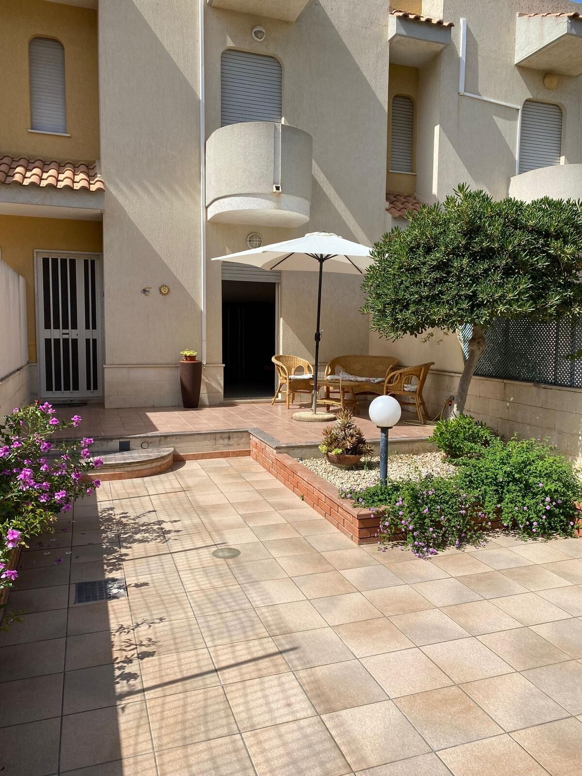 Located within a garden with direct access to the beach, the property is suitable for families/young couples looking for relax. It accommodates 4 people (5 on request), consisting of ground floor (terrace, living room, kitchen, double bedroom, bathroom) and first floor (living room, double bedroom, terrace with sea view).Wifi,Netflix, A/C included. Supermarkets, bakeries, bars, pizzerias. The pleasant sea sound (in sicilian "scrusciu du mari") represents the distinctive element of the structure