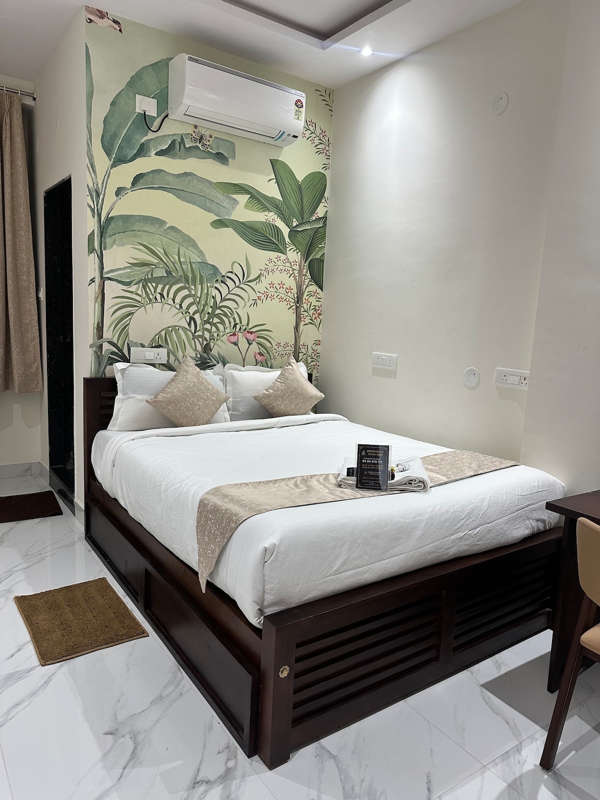 Experience luxury and comfort in our Executive Suite in Hyderabad, perfect for business travelers or couples seeking a premium stay. This elegantly furnished suite features a spacious bedroom, modern ensuite bathroom, high-speed Wi-Fi, air conditioning, and a dedicated work desk. Located in a prime area with easy access to IT hubs, shopping centers, and restaurants, it offers both convenience and class.