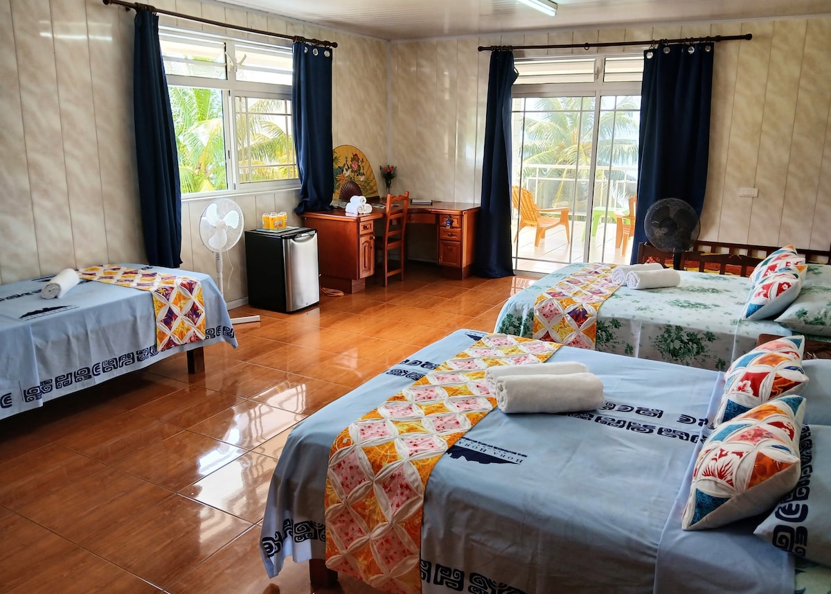 Studio de 50m2 complètement indépendant, sans vis à vis, offrant une très belle vue sur le lagon et l'océan. Il se situe sur la côte ouest de Raiatea, face au soleil couchant, à 8km du centre ville. Accès au lagon à pied. Lit queen size, grande douche, cuisine extérieure entièrement équipée. Tarif sans supplément (ménage, taxe de séjour inclus).2 vélos sont à disposition.