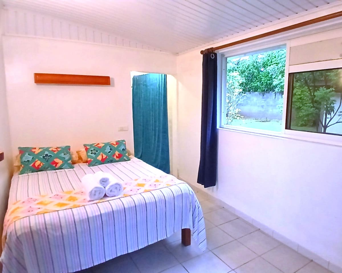 Joli bungalow 50 m2 , agréable et confortable, entièrement à disposition des voyageurs comportant : une chambre spacieuse avec grand lit neuf, chambre climatisée, cuisine toute équipée, salle de bain, terrasse couverte, deck et pergola. La chambre est équipée de moustiquaires et des anti moustiques sont fournis. Idéal pour un couple. Situé dans un quartier calme à seulement 2,5km du centre ville.