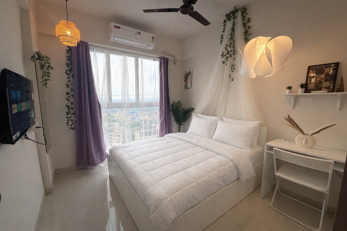 High Floor Great View !! Stay in a cozy 1BHK overlooking Versova’s lush green canopy! Perfect for 2 guests ! Lush green Mangroves, this home is bathed in natural light, a calming retreat from the city buzz. Enjoy your morning coffee by the window, or unwind after a day out. Just 15 minutes from Versova Beach, cozy cafés, and Mumbai’s vibrant nightlife, it strikes the perfect balance of comfort, charm, and convenience. Kick back, relax, and make this serene escape your home away from home :)