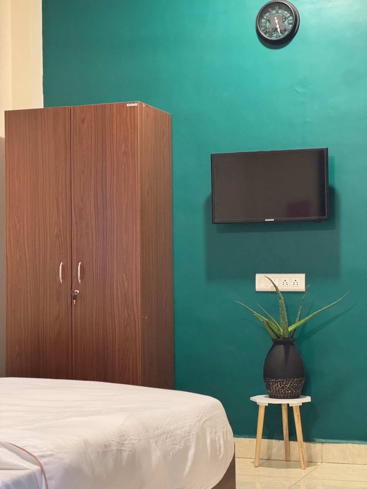 Hosted by Privy Stays Alibaug’s most trusted host network with 5,000+ reviews and a 4.8⭐ rating. Welcome to our luxurious rooftop wooden cabin suite, featuring a private pool, bathtub, AC room, and attached washroom. Enjoy breathtaking sunsets and our special dining service under the stars with your loved one. Please note: the cabin’s unique triangular design makes the interiors cozy and compact, mainly washroom, yet warm, charming, and fully equipped for your comfort.