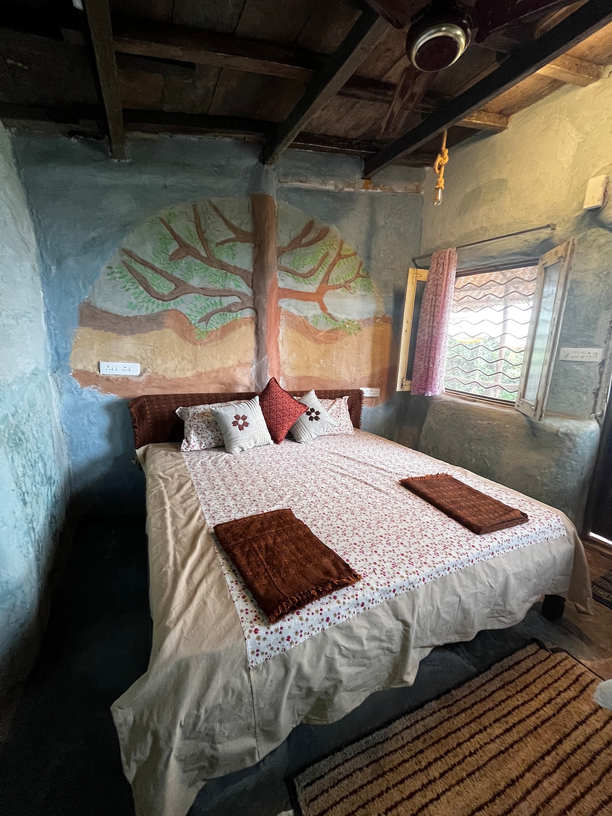 Welcome to Jambhul, a cozy strawbale room named after iconic tree found in the Western Ghats, known for its delicious fruits. This charming space measures 10 feet by 10 feet and features an attached wash for your convenience. Experience the beauty of nature while enjoying a comfortable stay in this unique. Perfect for a peaceful getaway