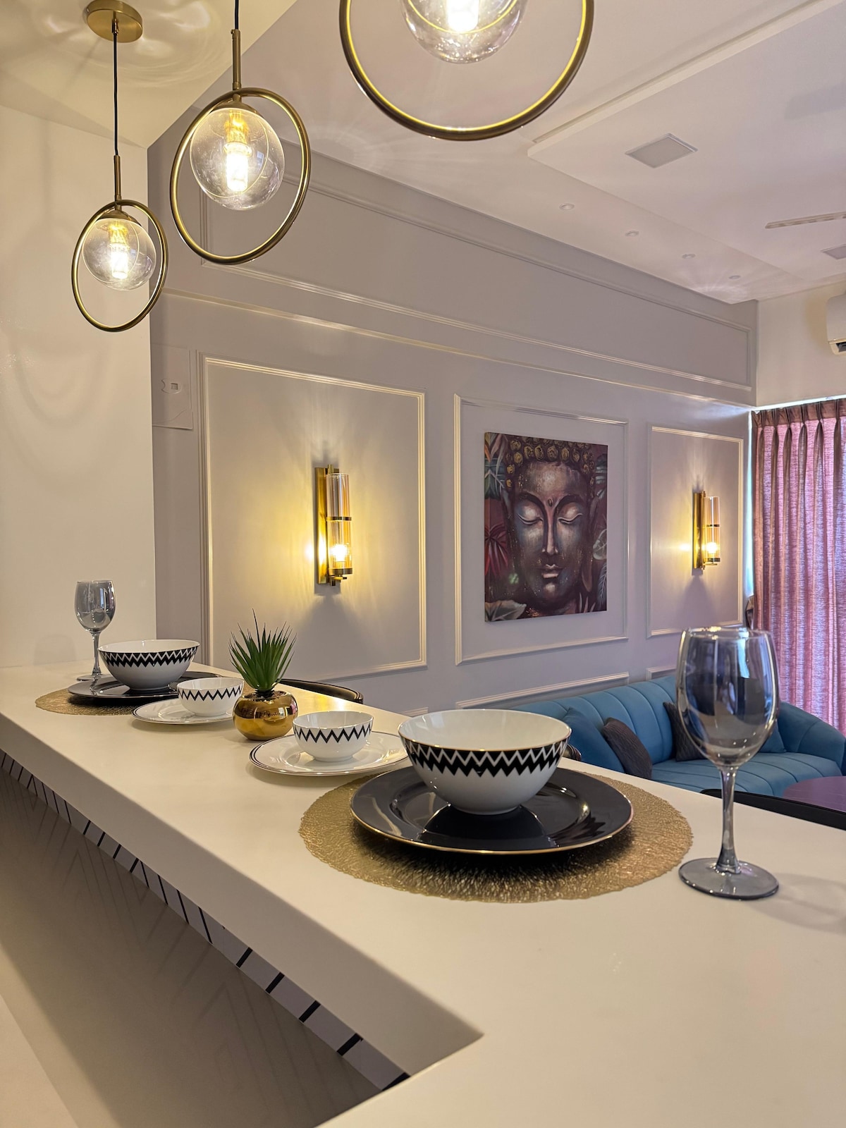 Experience the epitome of luxury living in this stunning 2BHK apartment, perfectly situated on the 20th floor with breathtaking golf facing views. With its sleek and modern interiors, this apartment is fully equipped to provide you with the ultimate comfort, convenience, and lifestyle. Our apartment has been recently renovated with modern interiors, ensuring a comfortable and relaxing stay. Luxuriously Designed for Ultimate Comfort We look forward to welcoming you to our little slice of heaven.