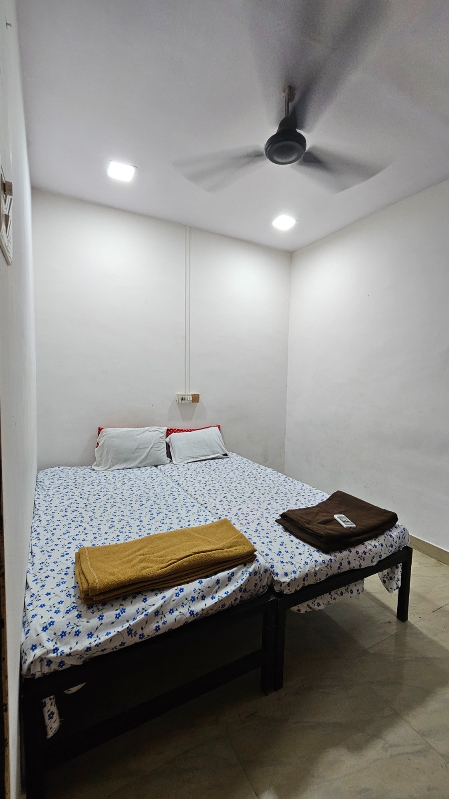 Just the room, with private entrance & an english toilet cum bathroom. The room size is 12X12. It has a work desk, cot with mattress, bed linen, pillow, mini fridge, kettle, microwave with basic cutlery. NO KITCHEN ACCESS, NO TV, NO AIR CONDITION During summers a desert cooler will be provided. Anything additional would be provided at extra cost or for being nice and accommodative. Laundrette can be provided at extra cost. Iron, hangers, toaster available on request and my availability.