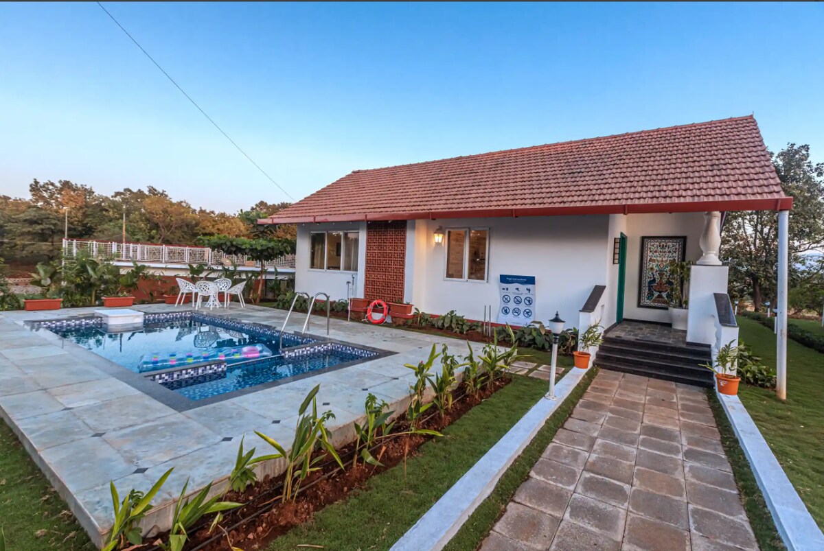 Situated in Pawana, within a few km of the mighty dam, Maharaja foothills, offers accommodation with top notch amenities and spectacular views with pool. This property offers access to Terrace Free private parking WiFi. Outdoor games Hobby and learning - mud/rural cooking Gardening etc. secluded and safe, with immense peace and tranquility With 4 spacious and comfortable rooms overlooking the Shayadari ranges and the Malwandi dam. Pool is the most enchanting part of maharaja foothills.