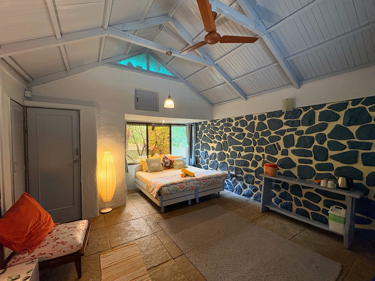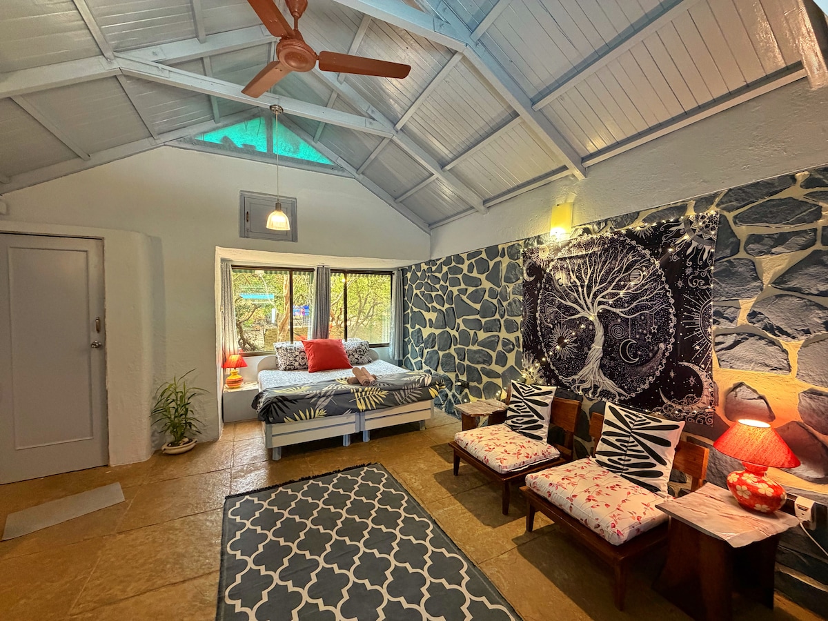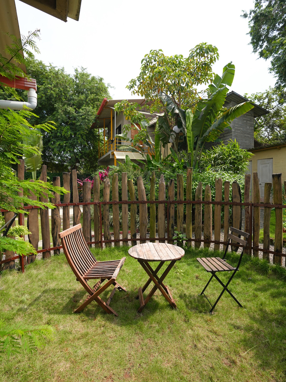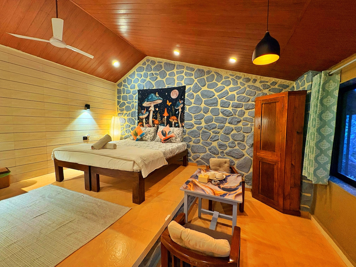 Welcome to Tamarind Retreat. This premium double room comes with - Complimentary breakfast - Own private entrance without restrictions. - Private outdoor sitting area - Free high speed wifi over the whole space - Swimming pool access - We have a restaurant that will cater to all your yummy needs - Game room access, with pool table, carrom etc - Barbecue and movie night on weekends, barbecue is charged separately - Pet friendly - Morning exercise and yoga space