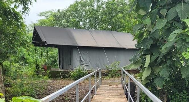 🌿 Where Stillness Meets Soulful Earth Welcome to a space that breathes with you. Nestled under mango trees and surrounded by nothing but birdsong and silence, this luxury tent is not just a stay—it’s a return. A return to breath, to nature, to forgotten joy. Located opposite our main villa but completely private, this soulful sanctuary blends the wildness of the forest with the comfort of curated design.
