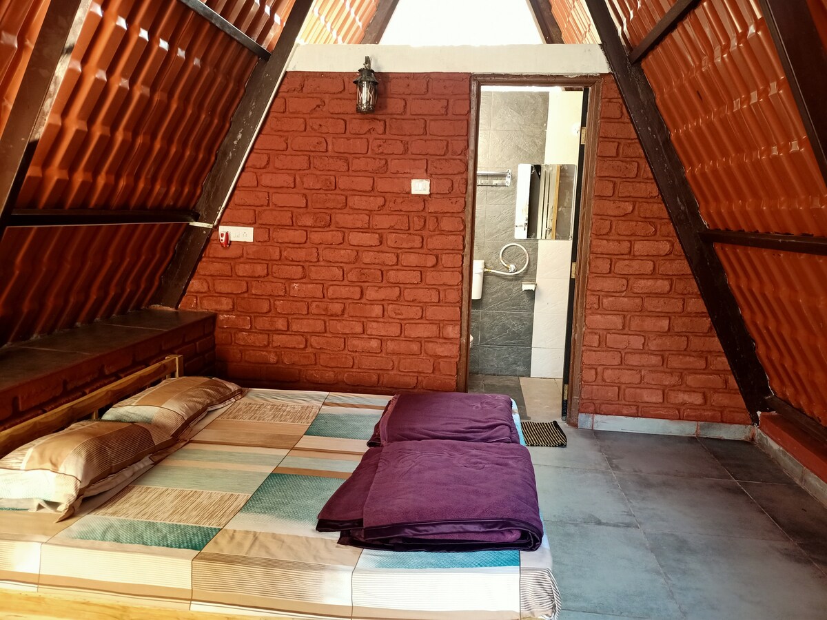 Hosted by Privy Stays Alibaug’s most trusted host network with 5,000+ reviews and a 4.8⭐ rating. Welcome to our luxurious rooftop wooden cabin suite, featuring a private pool, bathtub, AC room, and attached washroom. Enjoy breathtaking sunsets and our special dining service under the stars with your loved one. Please note: the cabin’s unique triangular design makes the interiors cozy and compact, mainly washroom, yet warm, charming, and fully equipped for your comfort.