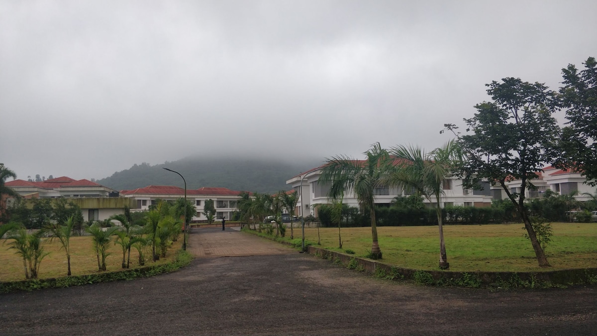 A beautiful 1bhk apartment away from the hustle bustle of the city with a luxurious balcony and a senic view .. This proper is quiet isolated surrounded by stunning nature and hill view We welcome you to visit our apartment which has a functional kitchen, board games, common pool, restaurant, natural treck and seasonal waterfall (in monsoons) This apartment is a perfect get away to relax and rejuvenate Check in time - 1.00 pm Check out time - 11.00 am