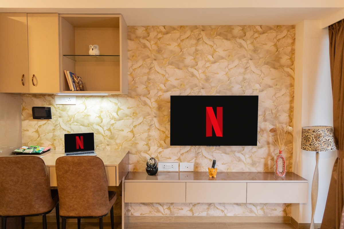 Soak up in the unreal sunset moments🌅 Bright, Airy & Modern! Blissville is everything Aesthetic✨ The decor of entire Space is Tasteful in Aqua theme which complements the Sea view 🩵 This 2bhk is our Home laboured with love and We invite you here to indulge in soulful moments with ur loved ones 💜 Enjoy Stunning Views of the entire City & the endless sublime ocean from every nook! Perfect for Long term stays, Staycation, Work-cation, Solo Travellers, Tourists & those who seek Luxe Leisure🌟