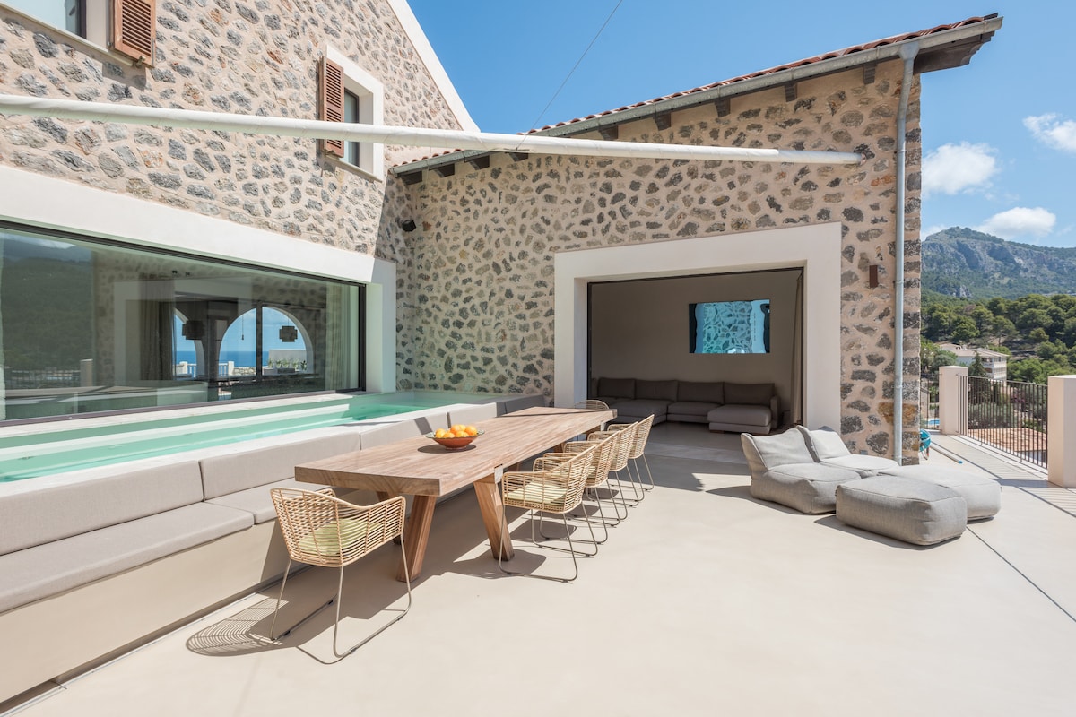 This superb, family-friendly villa on Mallorca is located in the town of Deia, a historic gem near the island's northwest beaches, famous for its sea views and pristine charm. The villa offers an ideal balance of Mallorca's rustic past and luxurious present, with evocative stone facades and walls, high-end amenities, and breathtaking views of the Tramuntana Mountains. Ample outdoor living areas include a swimming pool, two alfresco dining areas, and a rooftop terrace, while the beautifully renovated interiors include excellent media features and a gourmet kitchen. Four-bedroom suites with ensuite bathrooms.
