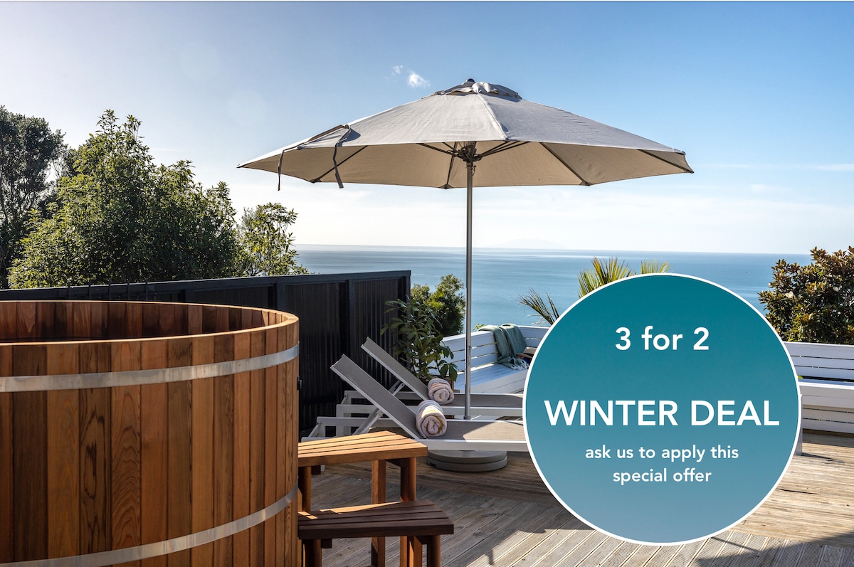 Located in Maraetai Beach (not Waiheke Island), the Driftwood Cottage is a stylish rustic self contained converted shed with panoramic 180 degree views. Designed as a romantic getaway, with 4 post bed, hot tub & amazing night skies. Expansive outdoor deck with louvre pergola room and outdoor seating. BBQ available on request. Stay, play, relax and unwind. Also available onsite is our other listing, the Tranquil Coastal Escape two bedroom guest suite, sleeps four.
