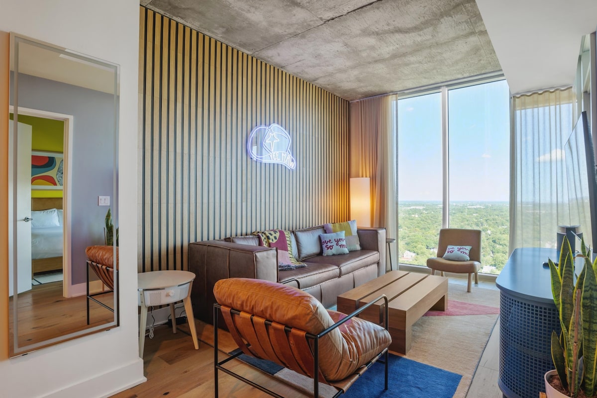 Embrace local living in our chic 29th fl condo off Rainey St in downtown ATX! Highlights: ✔ Rooftop pool & Dog Park ✔ Steps to Rainey Street ✔ Quick access to F1, ACL, SXSW, The Convention Center, music venues & museums ✔ 24/7 fully equipped fitness center, yoga, & Peloton bikes Perfect for explorers or WFH craving an authentic, personalized stay. Skip the corporate scene, surprise cleaning fees, and enjoy our family-owned and operated condo for an Austin adventure that feels like home!