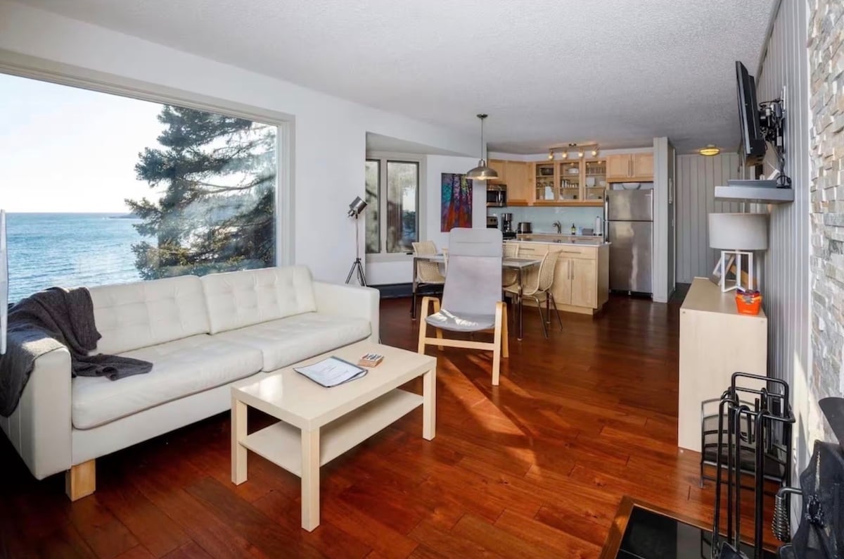 Sunny first-floor condo situated high atop rocky cliffs overlooking Lake Superior—just steps to the water's edge. Private end unit offers windows on 2 sides w/ stunning views & a stereo-like symphony of sounds of the lake & adjacent creek. A carefully curated collection of antique, vintage & modern furnishings & collectibles meld w/ modern conveniences. Relax on the private patio or along the shore. Easy access to hiking, biking & ski trails, great restaurants, Lutsen Mountains, a winery & more.