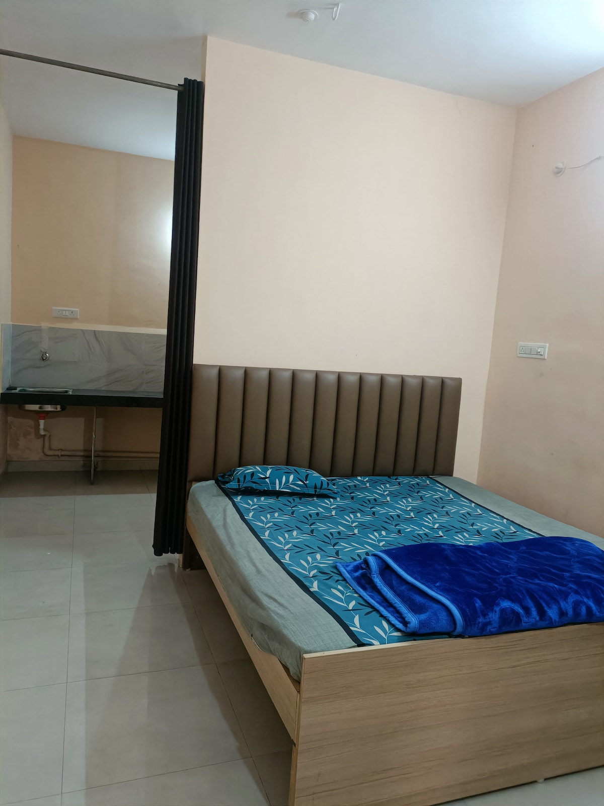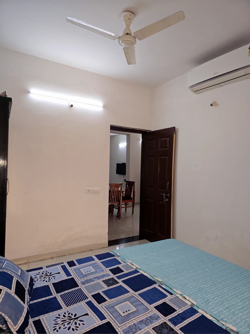 Welcome to our serene retreat! Our cozy apartment features a bedroom, kitchen, and spacious balcony with a stunning view. Please note, no non-veg cooking, including eggs, allowed. Enjoy amenities like AC, fridge, and 24-hour security. Explore our gym, garden, and playing space. Book now for a tranquil stay!