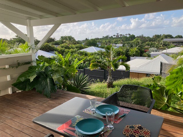 Située à Saint-François, à 10 minutes à pied de la plage des Raisins Clairs, proche de tous les commerces et activités , la Villa O'Tiguane propose deux studios classés 2 étoiles par Atout France; studios de 30m2 complètement équipés avec terrasse de 20m2, connexion Wi-Fi gratuite, climatisation, et accès direct et privatif à un jardin tropical et piscine. Environnement serein . Vous aurez la chance de voir nos locataires permanents qui ont donné le nom à la villa.: nos amis les iguanes .