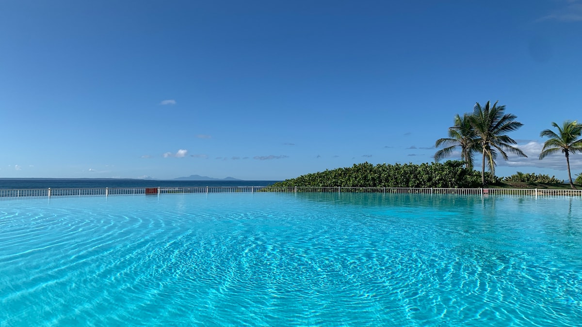 Studio de 30m2, confortable, cosy, ouvert sur l'extérieur, invite au repos dans un environnement de rêve. Il vient juste d'être rénové, au 2 ieme étage du bâtiment Frangipanier au 548, côté ombré. Résidence surveillée par des agents sécurité, plage lagon à 50 mètres, piscine à débordement à 50 mètres. Climatisation neuve et individuelle. lit 180*200. Linge de lit et de toilette fournis Serviettes de plage