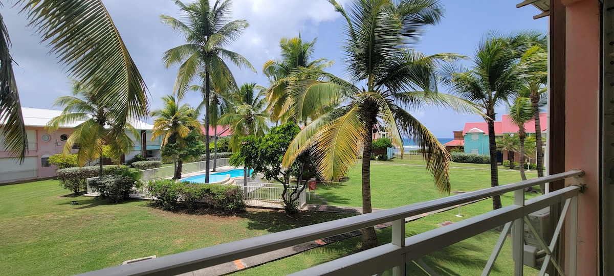 L appartement est situé au domaine privé et sécurisé de l' Anse des rochers. Nous proposons la location de véhicule avec le transfert aéroport 2 conducteurs et siège enfant offert si vous prenez les deux Parc arboré , piscine à débordement de 1000 m vue sur Marie Galante, la plage de sable de blanc , son cours de tennis , son parking gratuit et son restaurant. Le bourg est à 3 Kms , vous y trouverez , la Marina, golf, casino de jeux, commerces, restaurants, le port de pêche Bon séjour