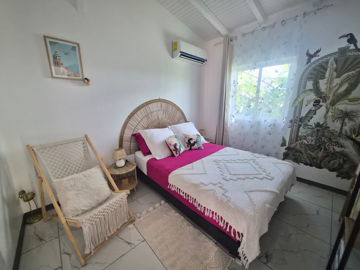 bienvenue dans notre villa Créole climatisée en Bois tropical à proximité de la Plage de l'Anse Maurice. Très privé, elle dispose d'un jacuzzi sous la terrasse, vous invitant au repos et à la détente tout en écoutant le chant des oiseaux Idéal si vous souhaitez vous ressourcer en amoureux près d'une plage presque privée bordée de falaises à 5mn à pieds. idéal pour la pêche et la randonnée parfait pour le télétravail grâce à la connexion internet fibre optique. Réservez vite votre séjour
