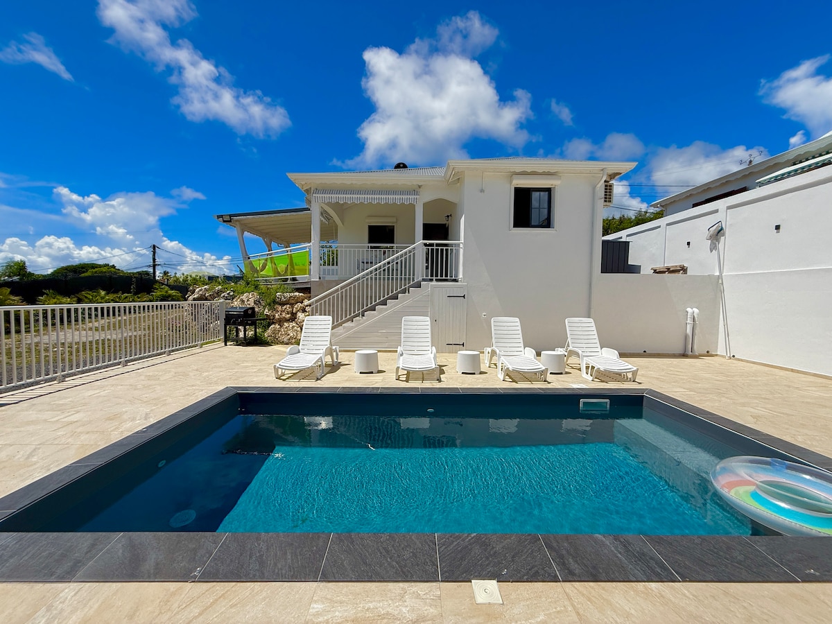 Venez vous détendre dans la magnifique villa toute neuve de Nolwenn et Gérard, alliance entre exotisme et modernité. Vous apprécierez sa vue mer et contemplerez les lumières de MARIE-GALANTE et même de la DOMINIQUE. Sa terrasse en deck et sa piscine privée perchée au sommet de la colline vous donnera une sensation d’évasion.🏖 Elle est idéalement située dans un quartier très recherché. La villa dispose d'une citerne d'eau potable afin de pourvoir pallier aux coupures d'eau. Nolwenn et Gérard🏖