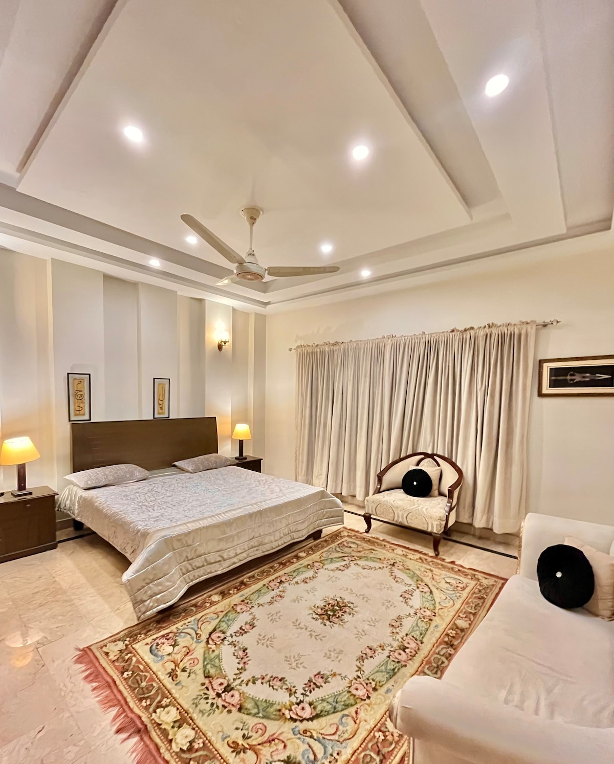 Experience the best of Lahore in our beautifully appointed 3-bedroom home, ideally situated in one of the city's most secure and prestigious societies, an ideal place for friends, work people, families on vacation. It has a tv lounge, drawing room, living & dining area, garage & kitchen. Every bedroom has its own terrace, washroom and the house is located in a lovely neighbourhood with tight security, markets, superstores nearby. All bedroom Ac’s are included in this price.