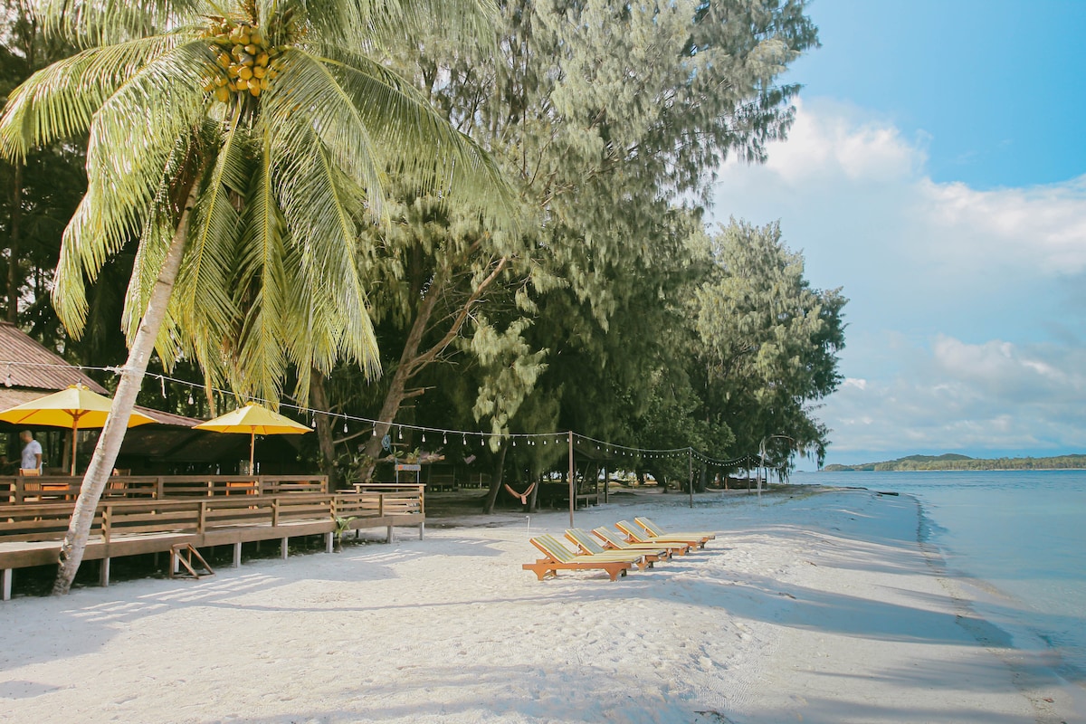 hi! Thank you for clicking on our property here we provide trance bungalows with two rooms in them and each room has a toilet and bathroom. we provide breakfast, lunch and dinner. At our place, you can visit the surrounding villages and you can also snorkel at the beach near your place. There are many other interesting things you can find at our place