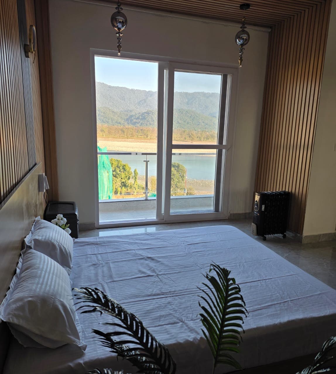 Step into a sanctuary where modern comfort meets the serene spirit of the Ganga. Nestled just steps away from the river, this stylish and calming retreat is designed for travelers who seek peace, rejuvenation, and a touch of luxury. Wake up to soft sunlight filtering through large windows, enjoy your morning chai on a private balcony with fresh river breezes, and unwind in thoughtfully curated interiors that bring together elegance, comfort, and nature.