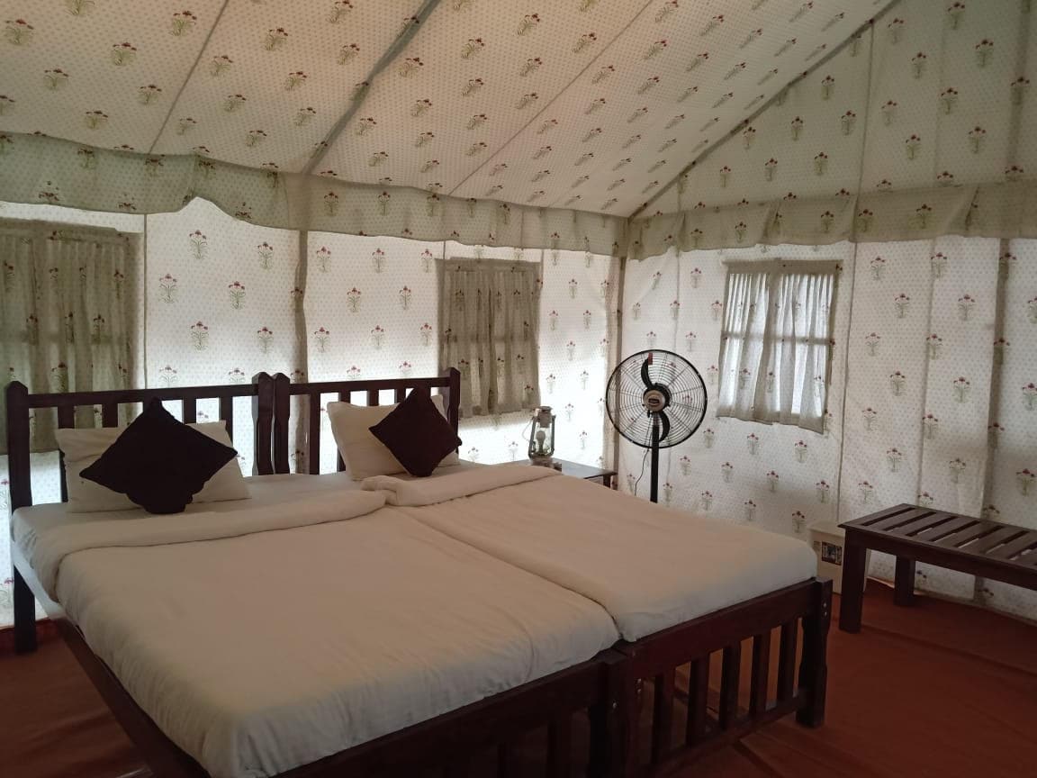 You are most welcome in my property. This property is not luxury but more then ....you can feel peace of mind with eco-friendly tents and cottages. You can enjoy nature having mountains around the property. There is a kitchen available if with 2 options Self cooking Or Cook is available Food order is must before 5 pm or good if can be earlier. Bon fire is available with additional charges Car parking available. Tracking points are available if interested. 30 minutes from the city center.