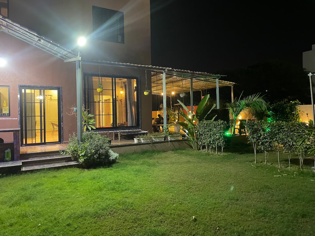 ◆ Just 2 km from Udaipur’s main city, this 2BHK villa sits quietly amidst the Aravali Hills. ◆ The villa comes with a private pool, lawn, and gazebo, along with a garden and bonfire setup. ◆ One bedroom overlooks the pool with direct access, while the other is equally inviting. ◆ With open spaces, peaceful surroundings, and a pet-friendly environment, the villa offers a refreshing stay in Udaipur.