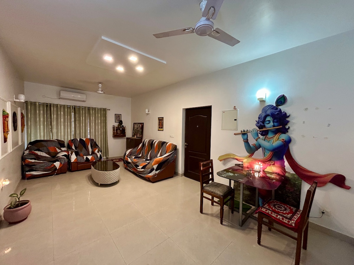 Welcome to Owee Stays, a peaceful Airbnb in Vaishali Nagar, Jaipur. Our minimalist mordern-styled home blends cozy modern design with calm, family-friendly vibes. Safe, secure, and fully pet-friendly — perfect for couples, families, and longer stays. Cozy ground floor unit with a private bedroom, guest lounge, living room, kitchen for light cooking, Wi-Fi, AC, Smart TV, and safety features. Laundry, iron, and hairdryer available on request. Calm and safe for a relaxing Jaipur experience.