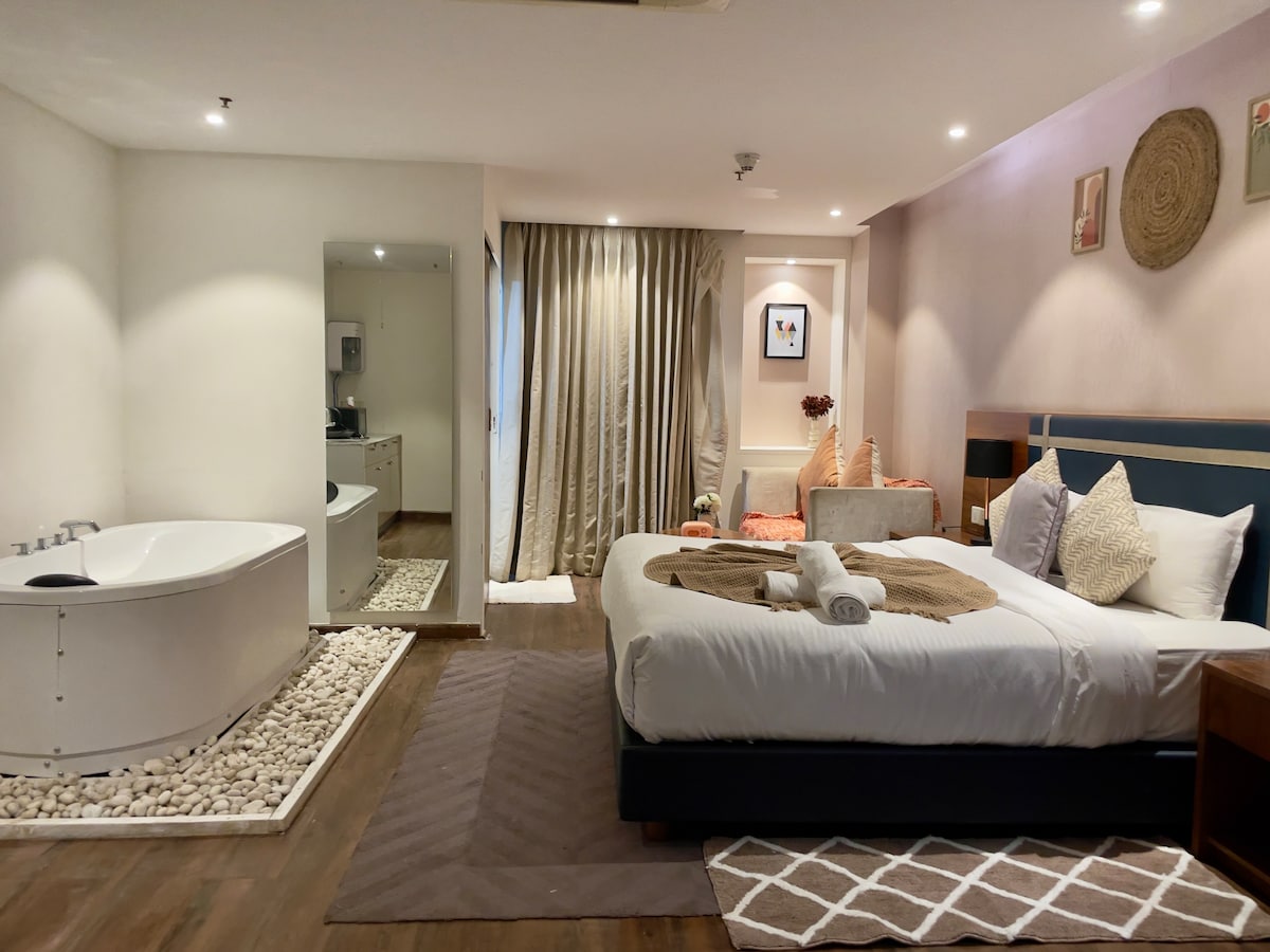 Bring the whole friends & family to this great place with lots of room for fun. - All large rooms equipped with 55” inch TV. - Spacious, clean, and beautifully furnished interiors - One Room with private Swimming Pool of 225 sqft - Fast Wi-Fi & Smart TV - Fully equipped kitchen with essentials - 24/7 hot water & air conditioning - Private balcony - Easy and secure parking - Bathroom essentials- Biotique Perfect for Couples & families looking for a stylish, peaceful, and well-connected stay.