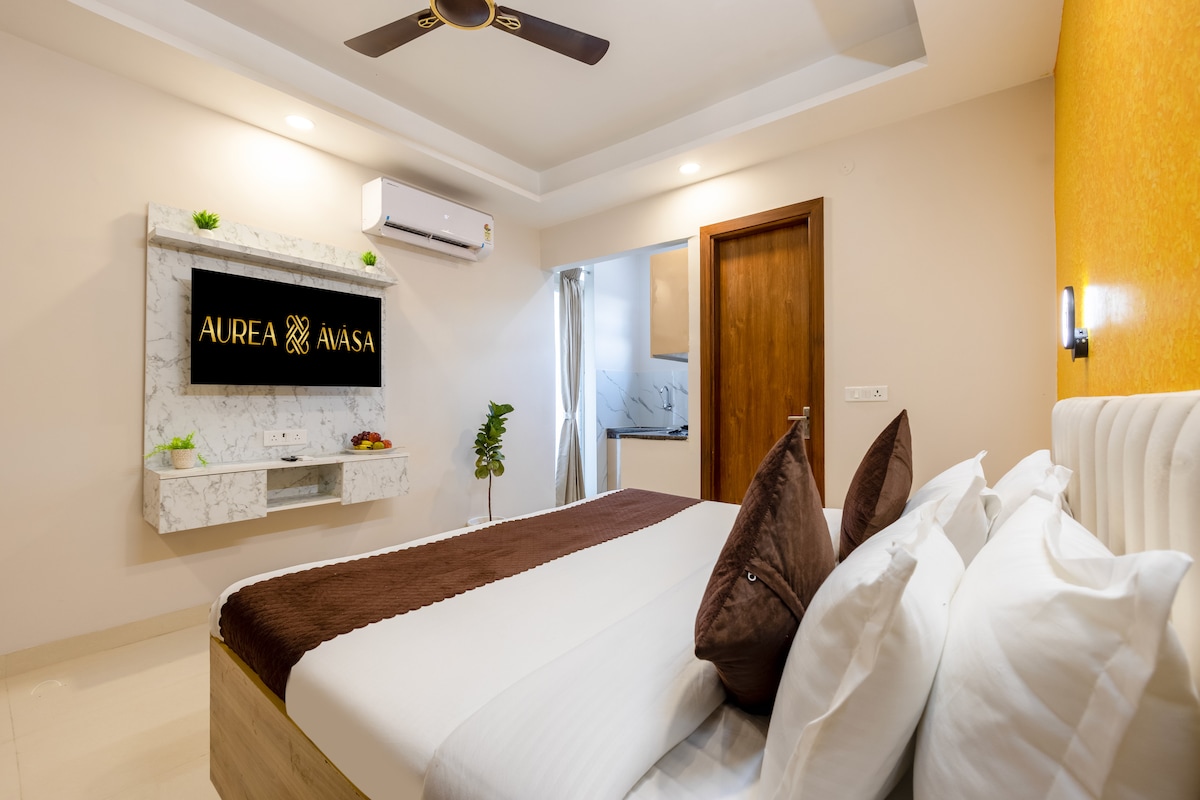Stay in style at our Luxury Room in Sector 57, Gurgaon. Just minutes from Artemis Hospital, Golf Course Road and Sector 54 Chowk Metro, it offers seamless connectivity across the city. Ideal for medical, business and leisure stays, the room blends modern comfort with elegance. We are licensed to host foreign nationals. Early check-in will be subject to availability and chargeable Rs.500 as well as late checkout will also be the same with ₹500 added for every 3 hrs thereafter. Book Now.