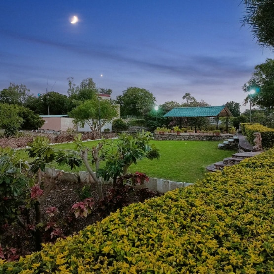 Escape to Aanandam Retreat, a peaceful 2-room luxury cottage in Ajmer with a private pool, green lawn, and rooftop machhan for sunrise views and stargazing. Guests love the blend of comfort and nature – cozy bedrooms with modern amenities, an outdoor kitchen for authentic cooking, and experiences like organic farming, bonfire nights, and lake treks. Pet-friendly and surrounded by greenery, it’s ideal for families, couples, and groups to relax, reconnect, and create lasting memories.